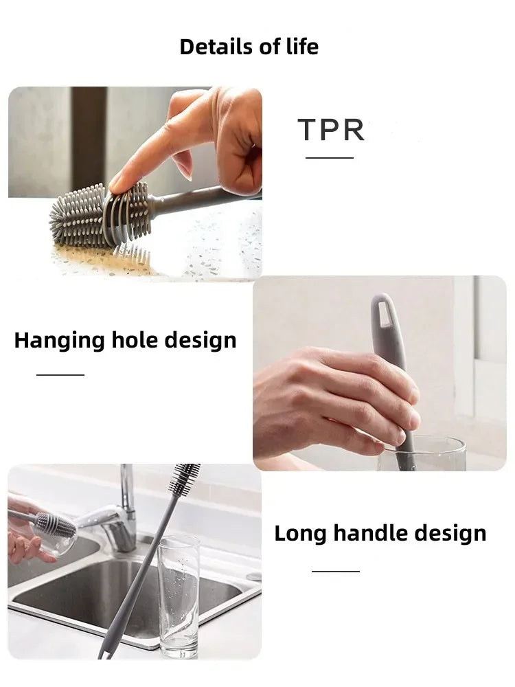 1/2/3Pcs Bottle Brush No Deadend Long Handled Silicone Milk Juice Cup Cleaning Brush Household Multifunctional Cleaning Tools
