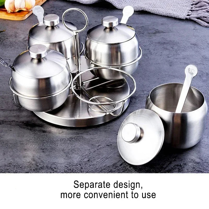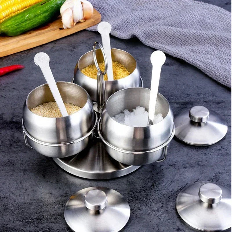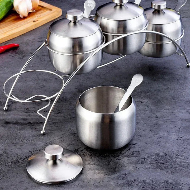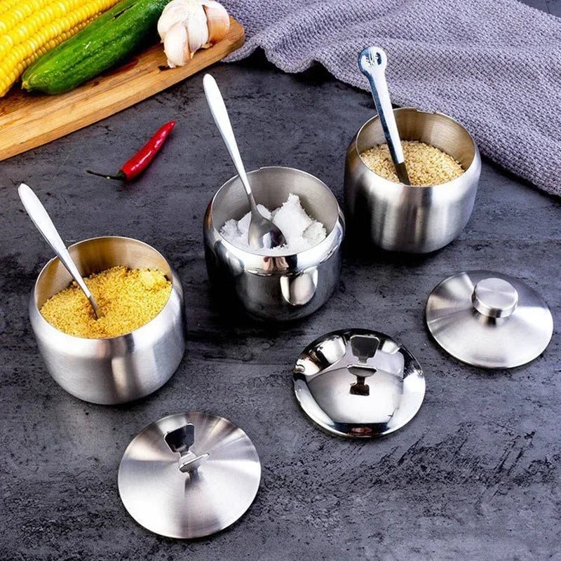 1/3/4Pcs Stainless Steel Seasoning Jars with Lid Condiment Bowls Spice Container Salt Sugar Bowl Household Kitchen Supplies
