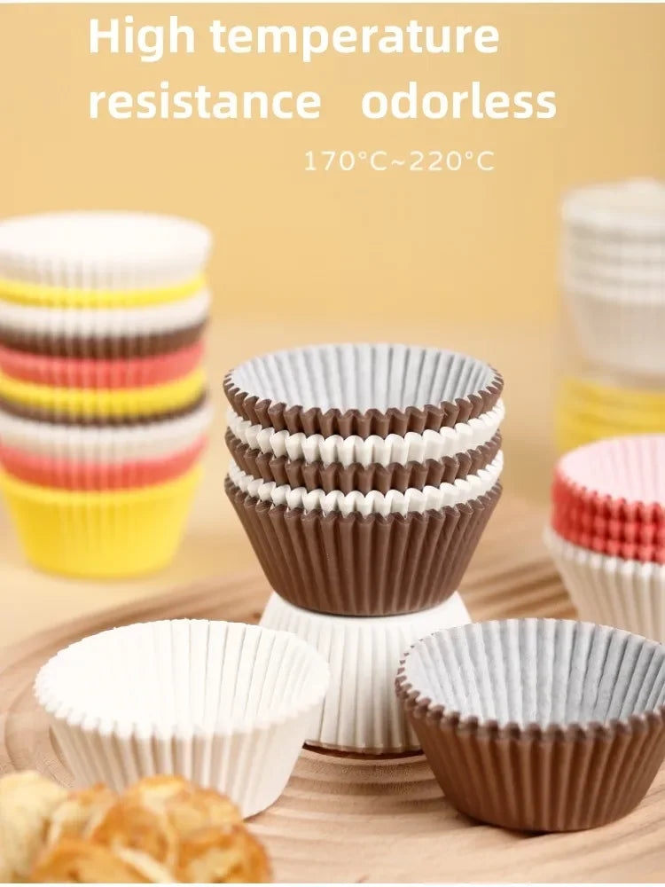 100Pcs Baking Paper Cupcake Moulds Food Grade Material Muffin Cupcake Holder Disposable Greaseproof Waterproof Baking Dessert