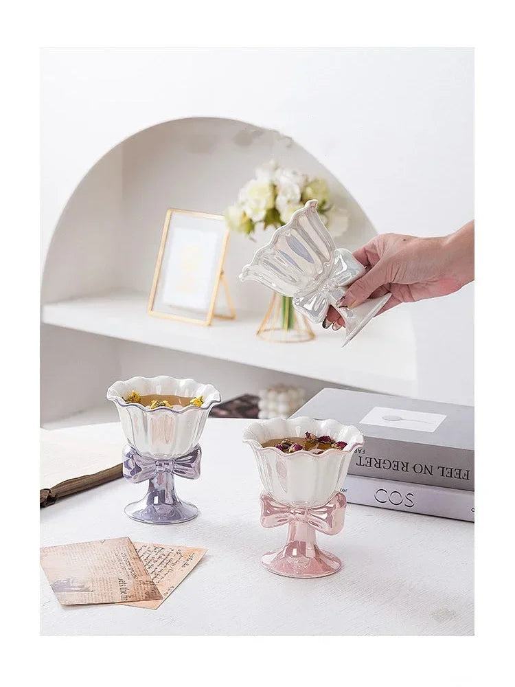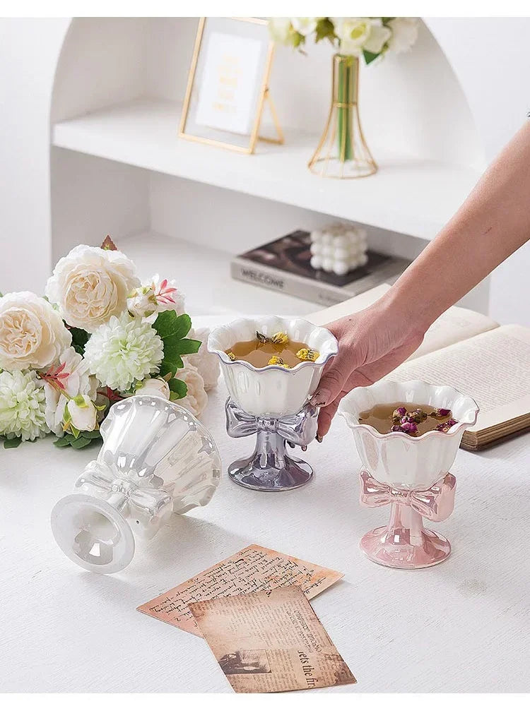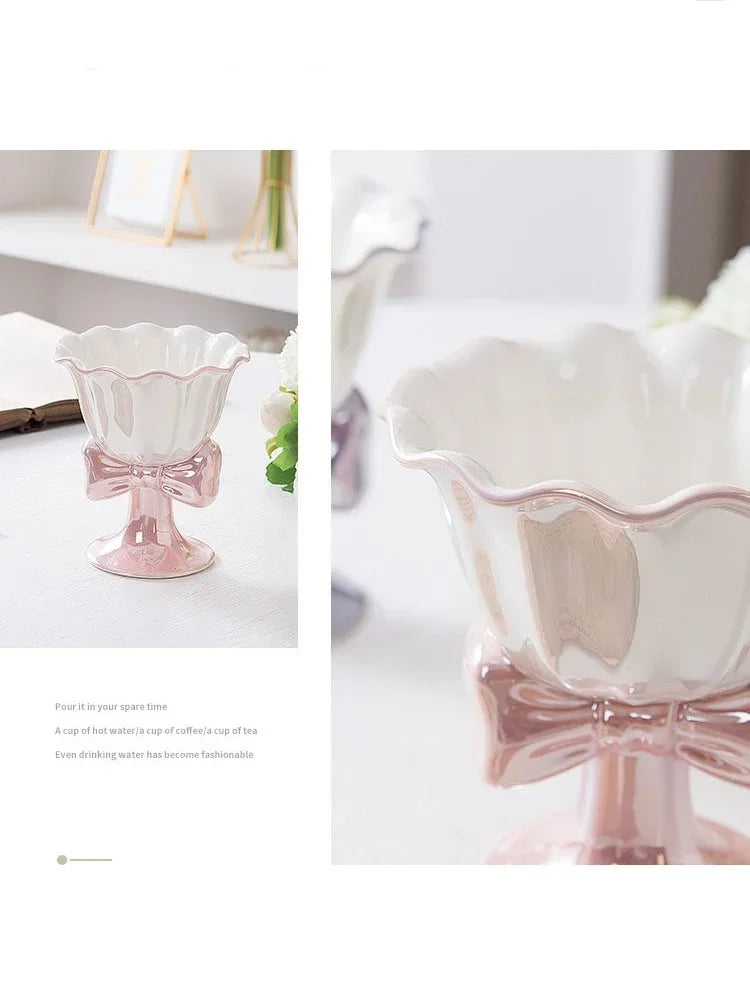 This Ice Cream Cup is made from sturdy ceramic material, practical for a time using. The cup has an exquisite workmanship, without burrs. Exquisite and smooth in each angle. With creative design, beautiful and practical. The ceramic footed bowl is holding yogurt, dessert, ice cream. ceramic material, exquisite workmanship, exquisite safety.