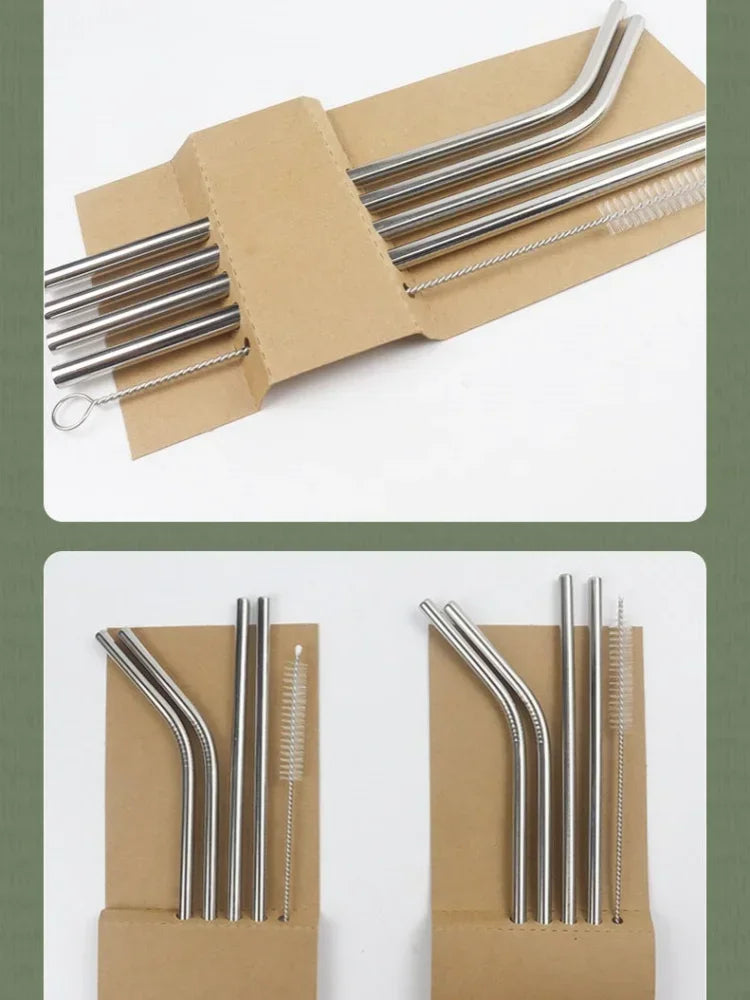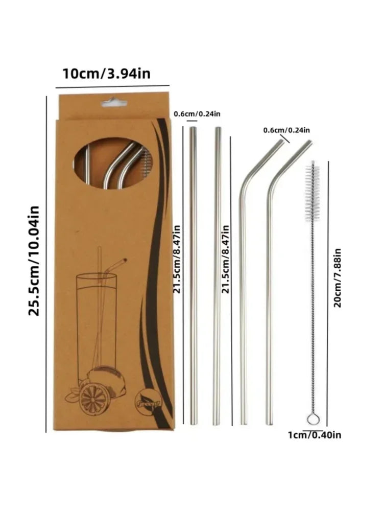 مصاصات المشروبات الستانلس مع فرشاة تنظيف