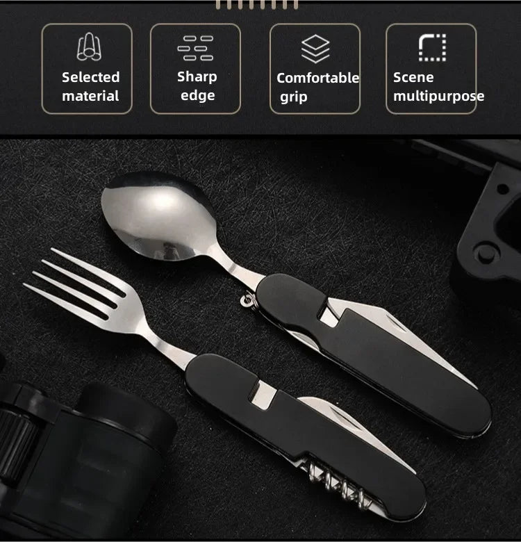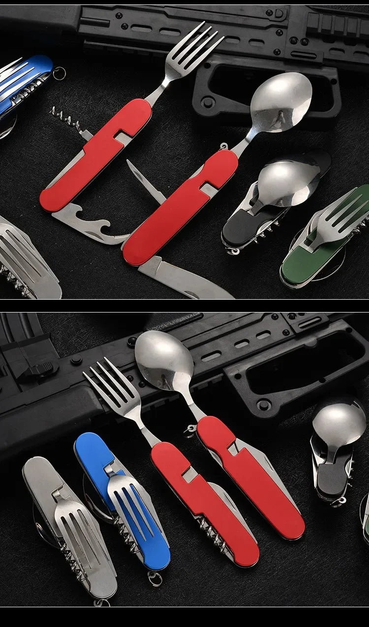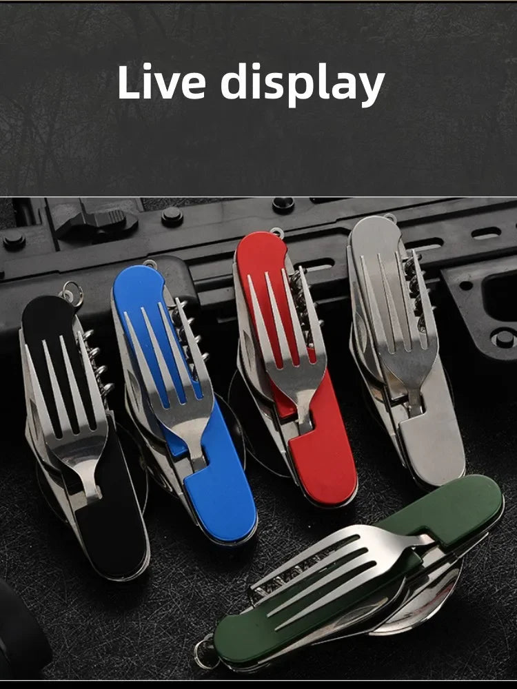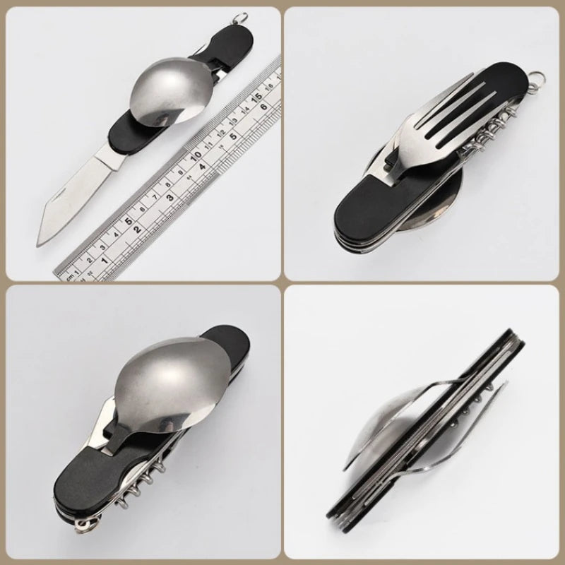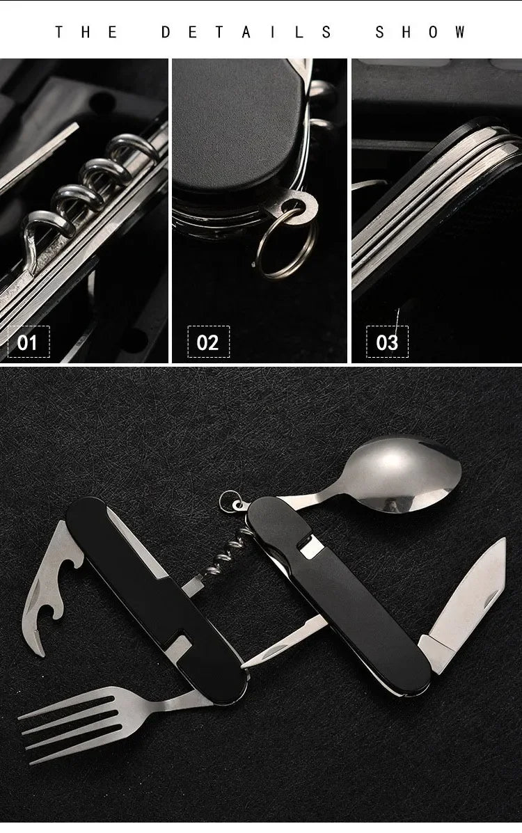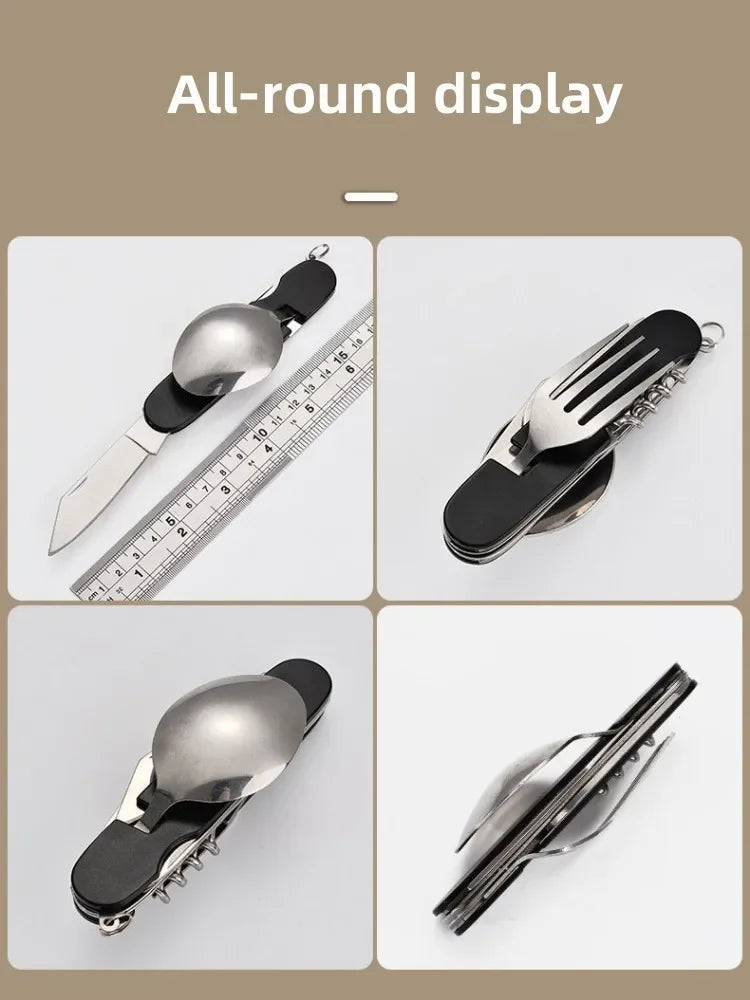 4 in 1 Folding Tableware Detachable Camping Utensils Stainless Steel Knife Fork Spoon Opener Portable Outdoor Travel Cutlery