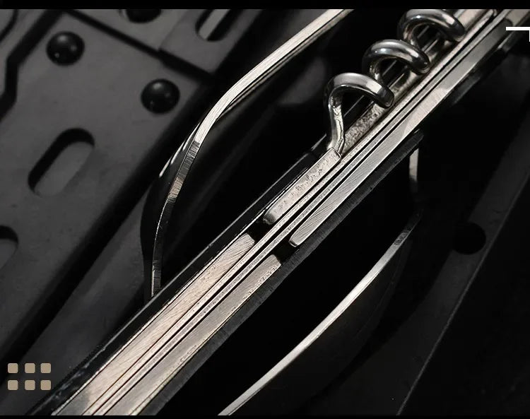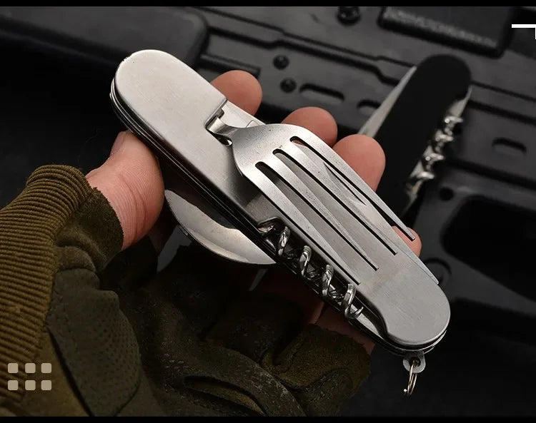 أداة الرحلات ٤ في ١ (ملعقة، شوكة، سكين، فتاحة)