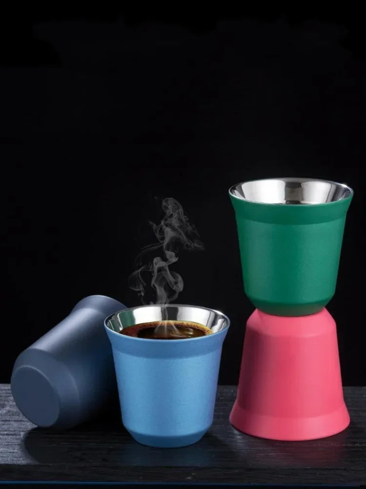 80ML Stainless Steel Espresso Cup Set Double Wall 304 Stainless Steel Small Coffee Cup Capsule Milk Mug Double Wall Insulated