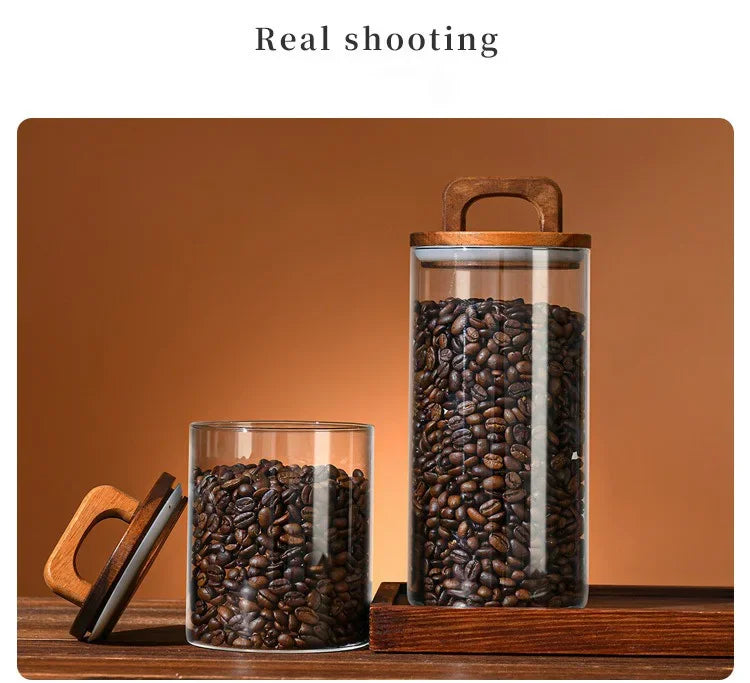 Clear Glass Jar with Bamboo Lid Sealed Canister Food Storage Container for Loose Tea Coffee Bean Sugar Salt Kitchen Gadgets