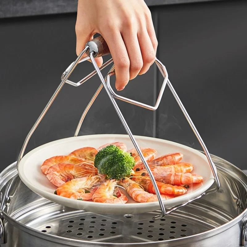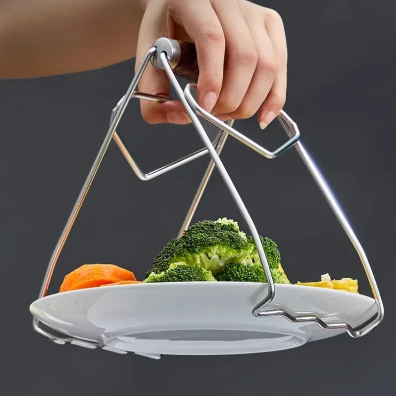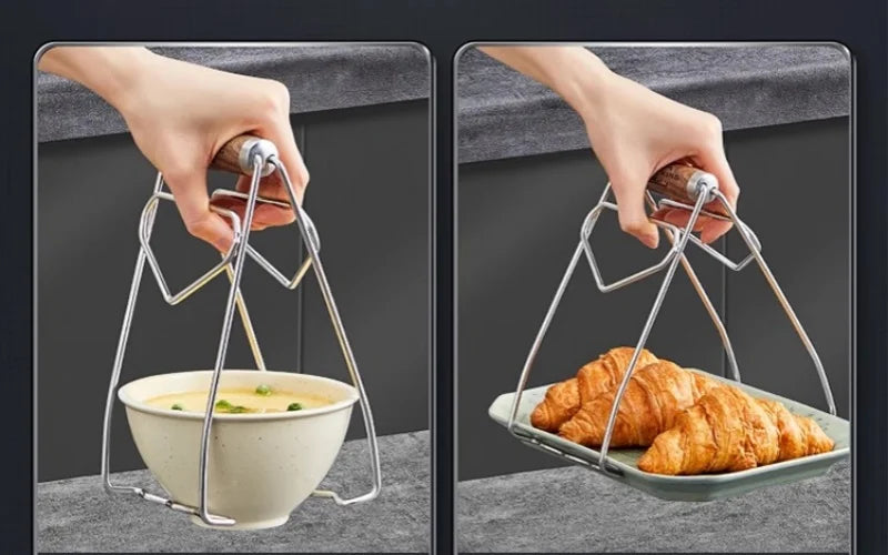 A must-have accessory for gripping hot and cold plates and bowls! Clip and lift hot inner pot or steamer basket, as well as other hot plates, tray, bowl from microwave, oven, air fryer, boiling pots safely.