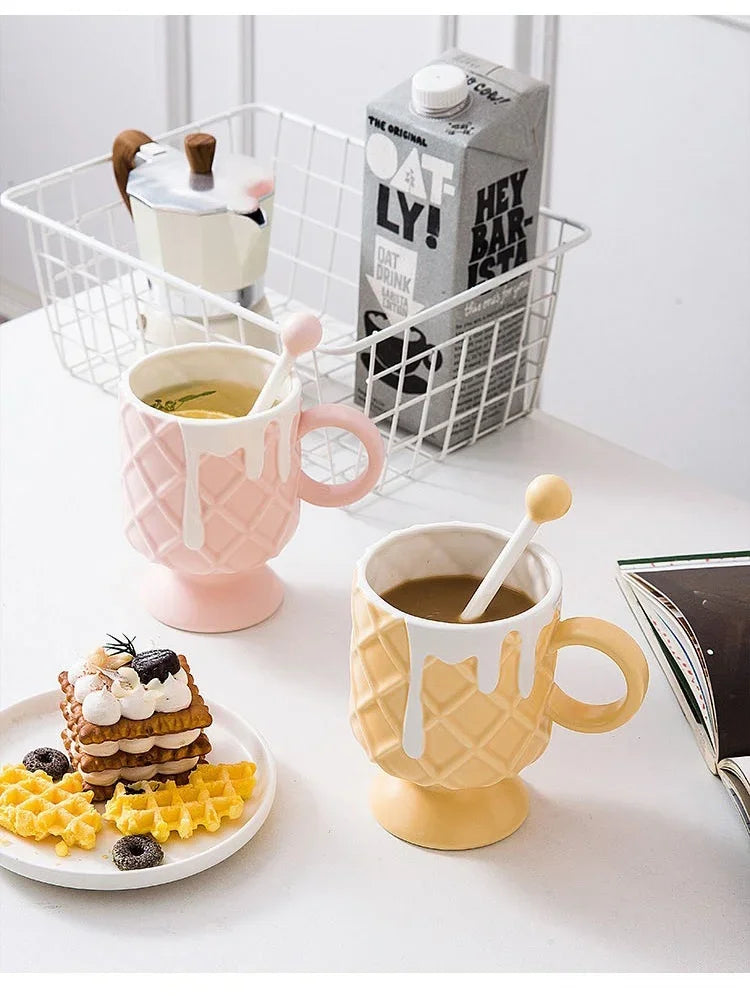 كوب قهوة بشكل آيسكريم مع ملعقة