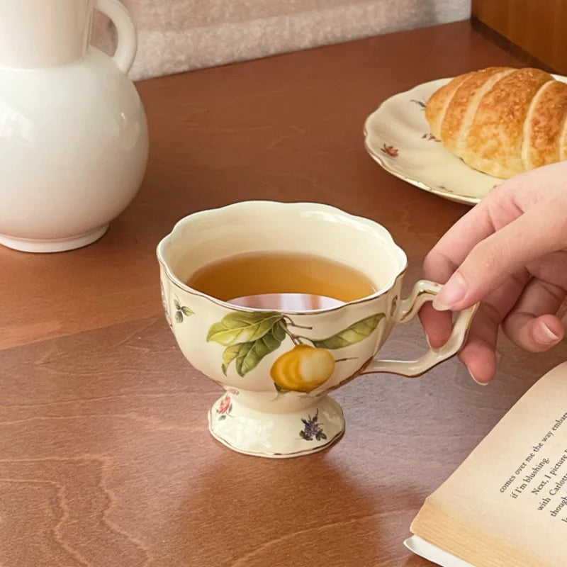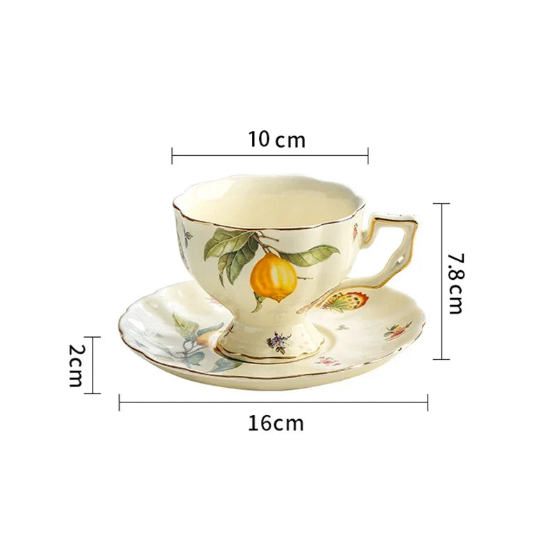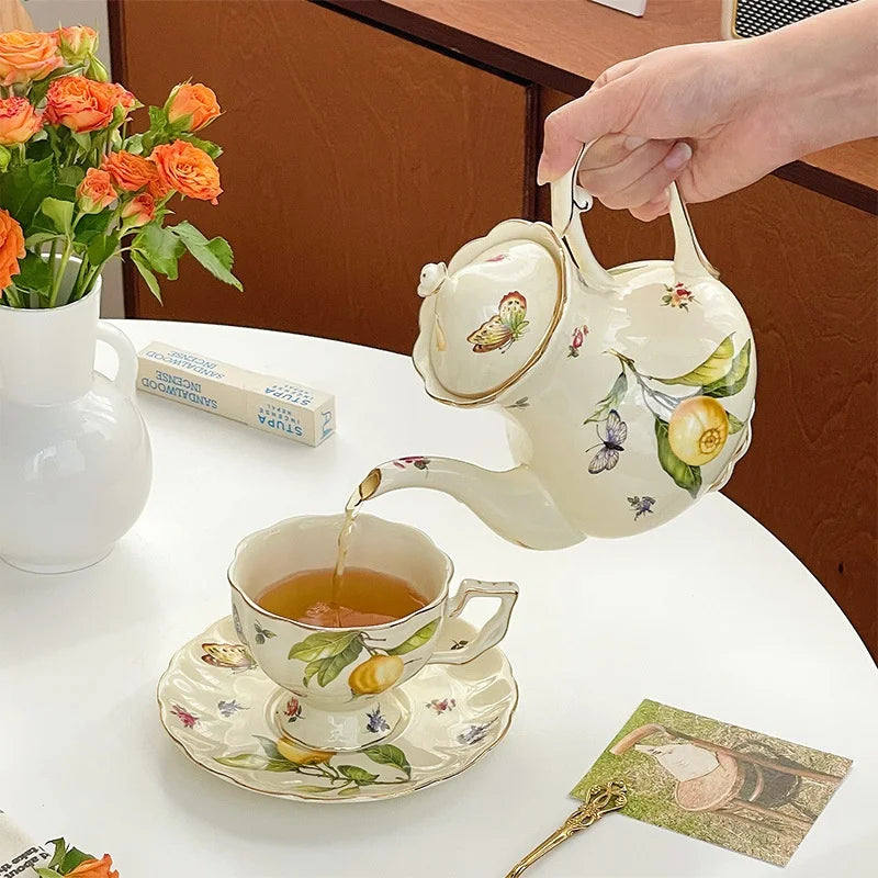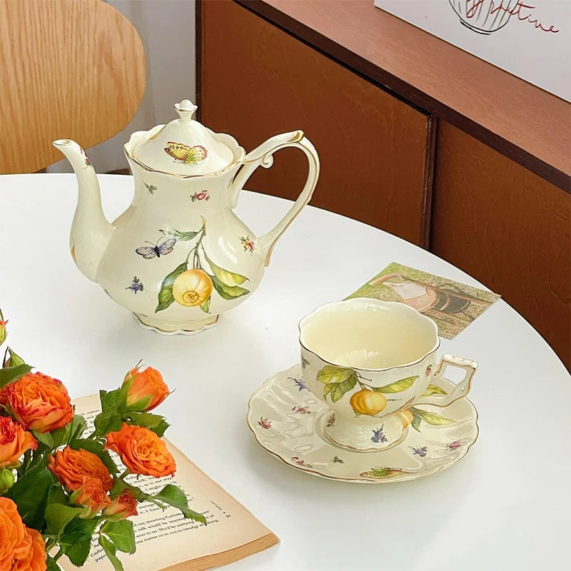 European Coffee Cup and Saucer Teapot Afternoon Tea Cup Lemon Pattern Ceramic Teacup Kettle Dessert Plate Drinking Utensil Gifts