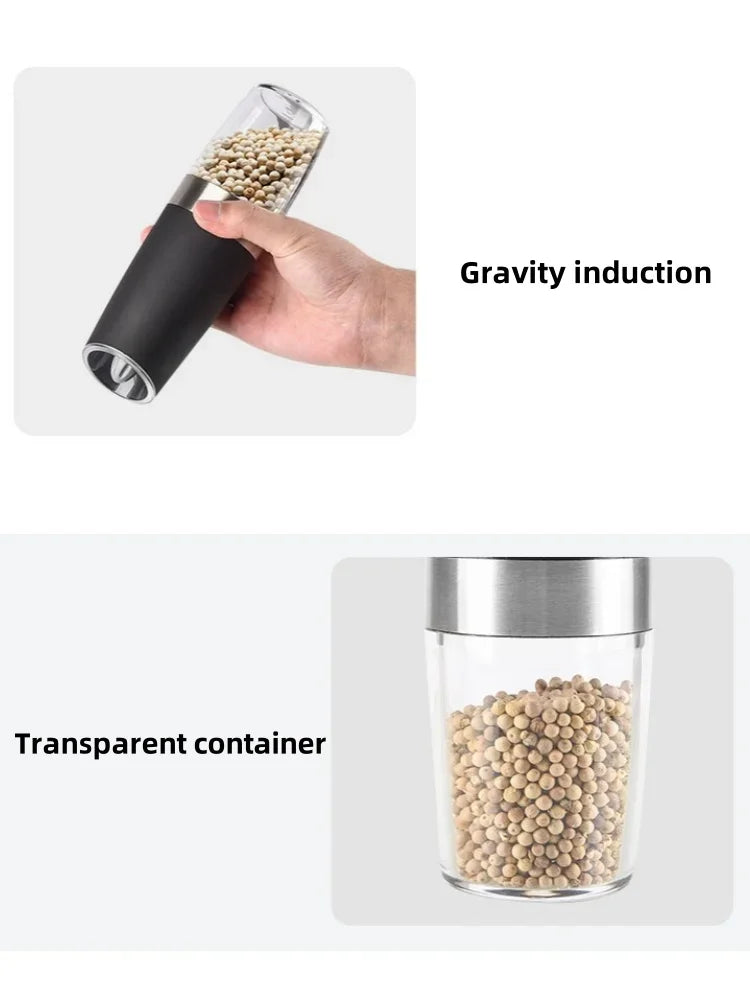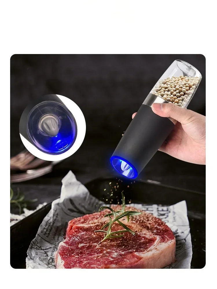 Gravity LED Electric Spice Grinder Electric Fully Automatic Grinder Adjustable Thickness Barbecue Seasoning Tool Pepper Grinder