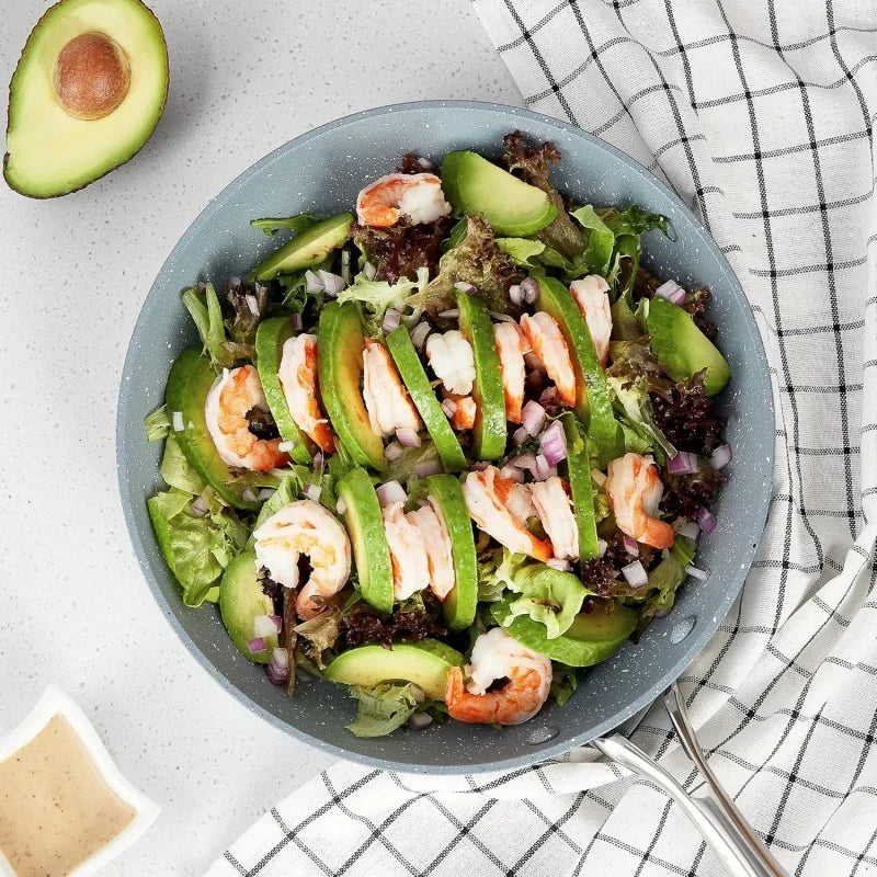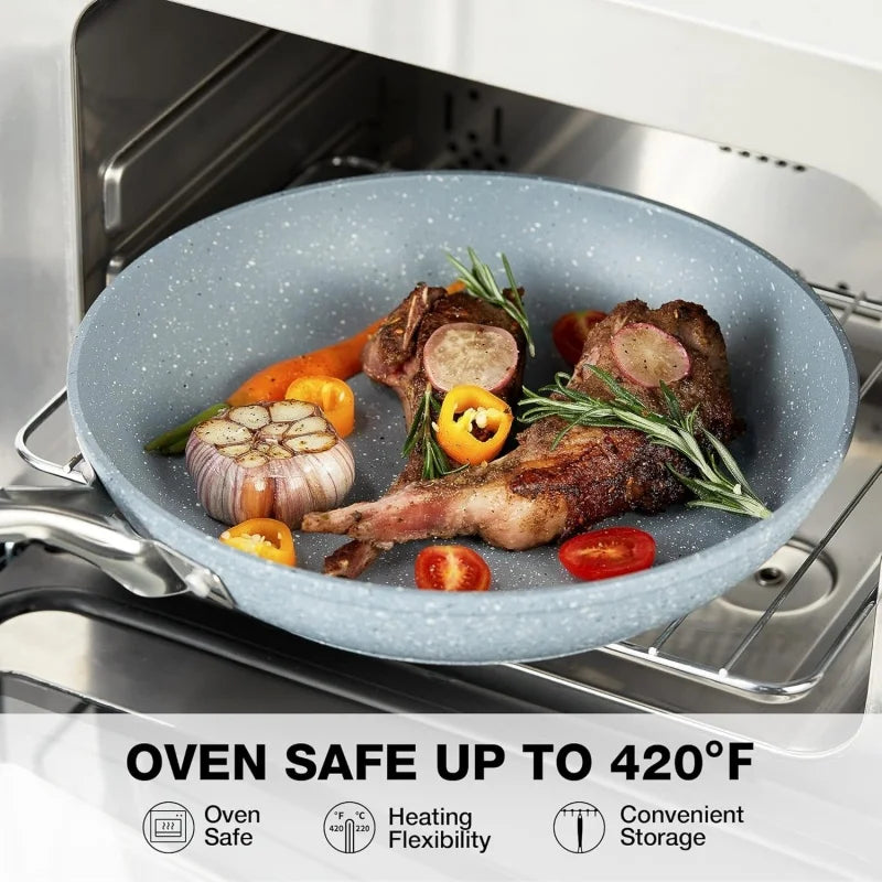 - HEALTHY & NON-TOXIC - 12 inch multi-purpose frying pan is satisfied with daily cooking.The natural non-stick marble coating is free of PFOA, PFOS, lead & cadmium for a healthier and more convenient cooking experience everyday.