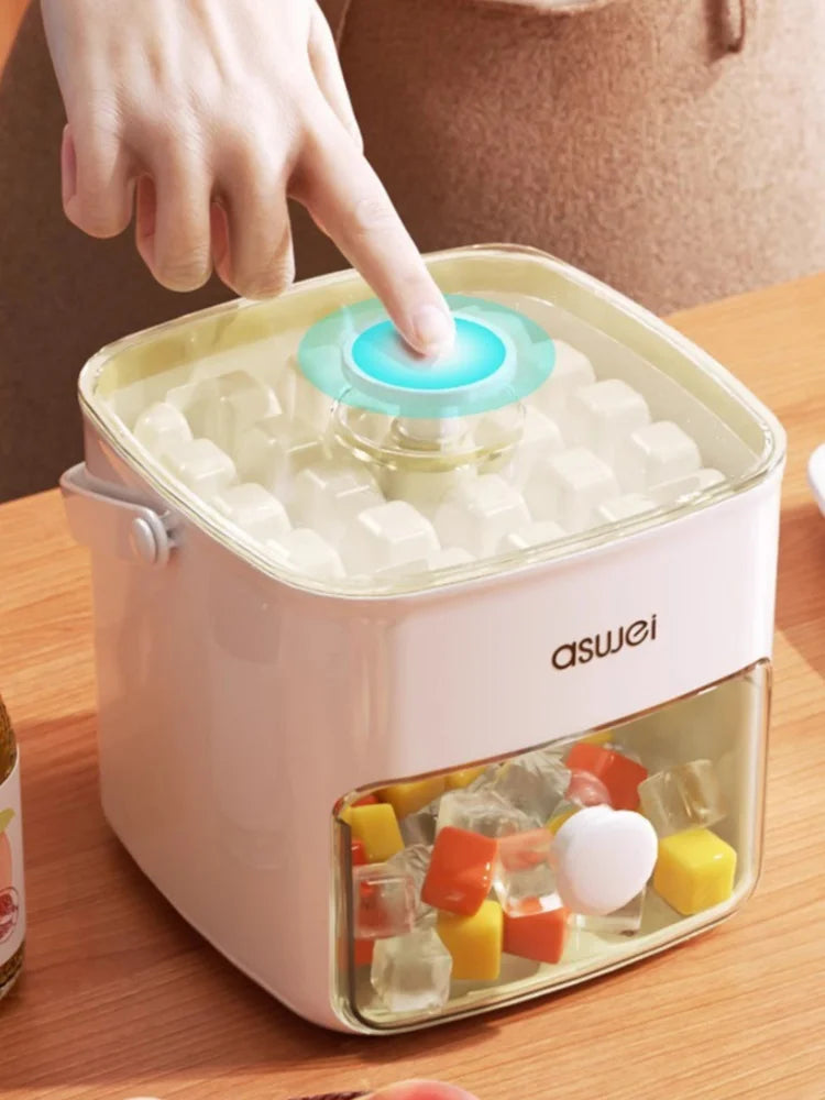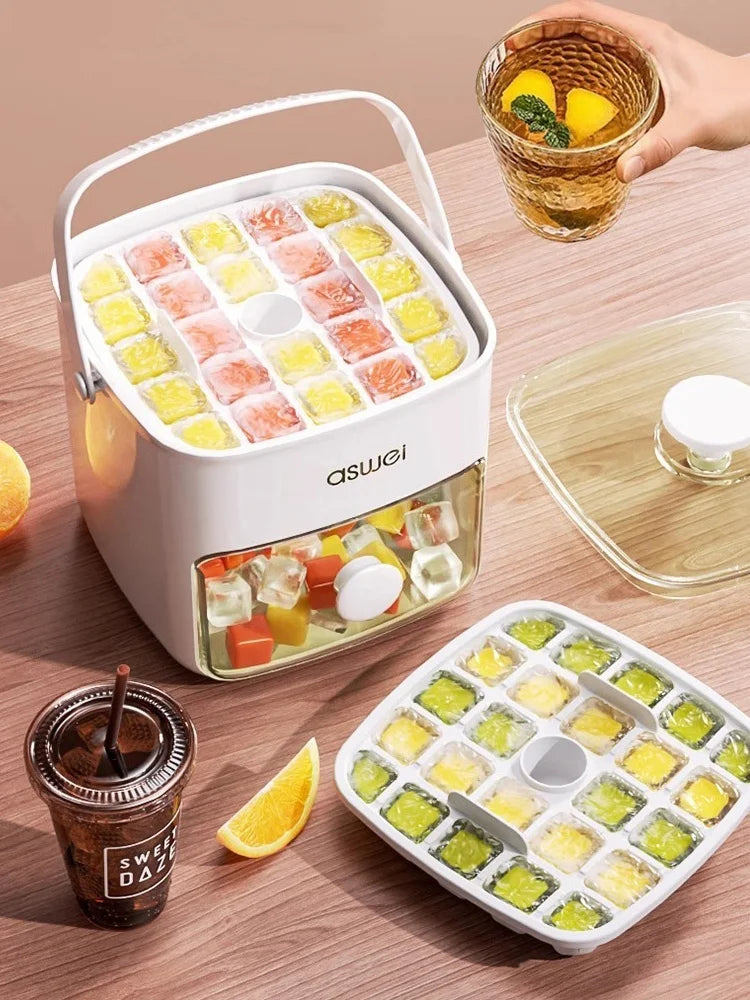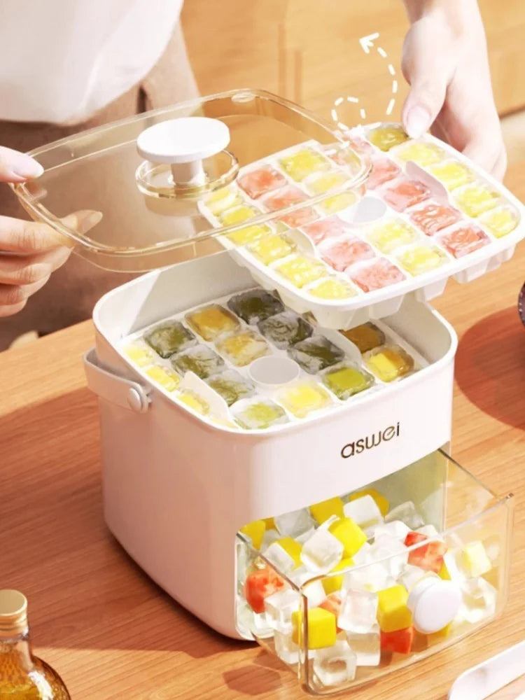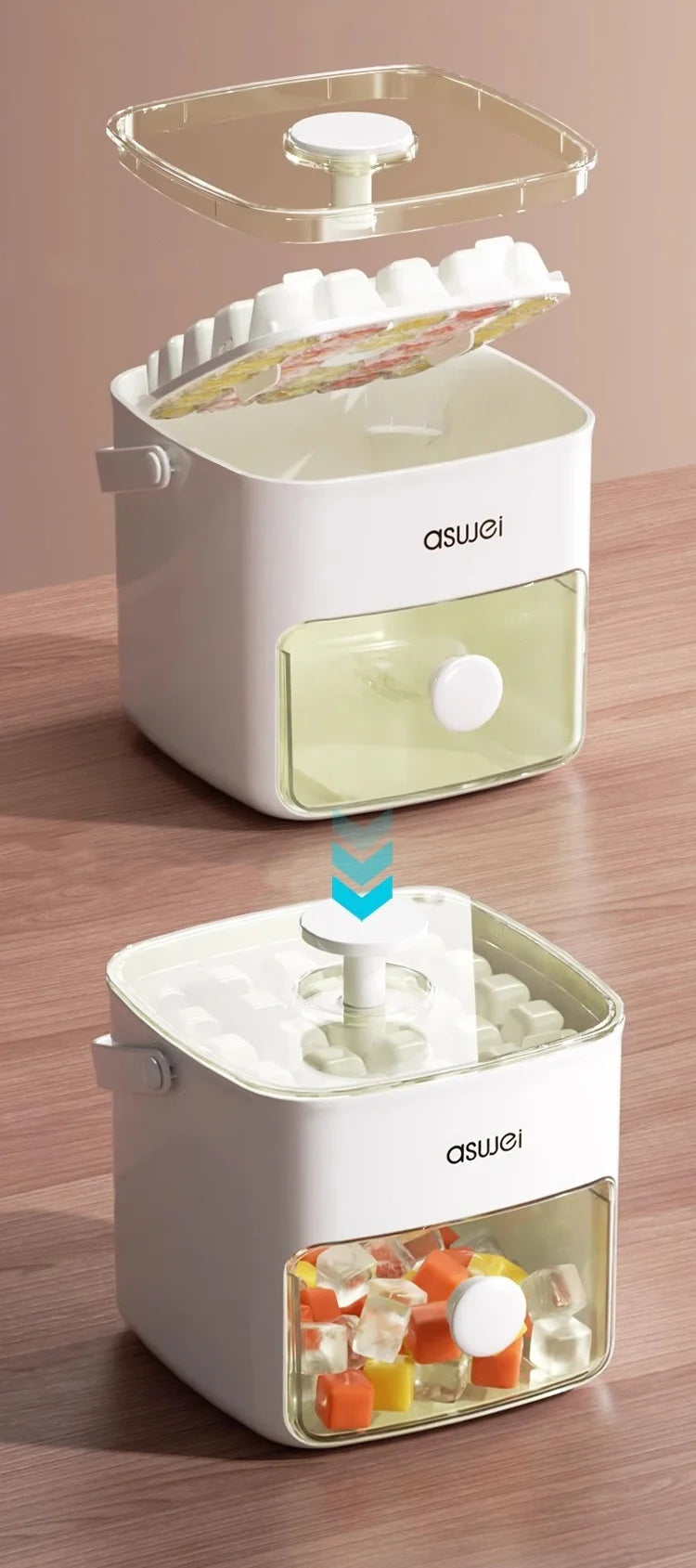 صانعة ثلج منزلية بغطاء ضغط سهل 🧊