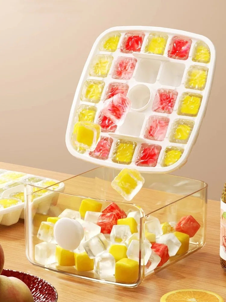 Ice Mold Ice Maker Machine with Easy-press Lid Ice Box Large Capacity Storage Containers Household Mould Kitchen Accessories