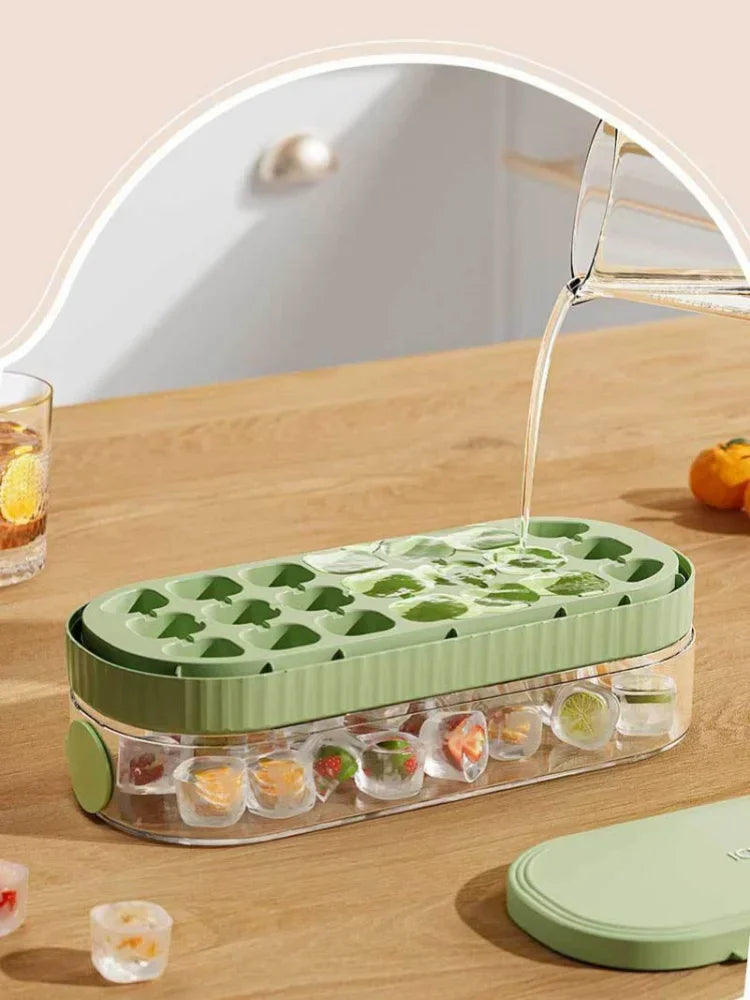 قالب ثلج سيليكون 18 خانة بغطاء ❄️