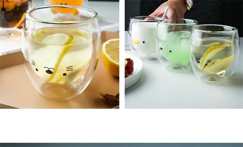 كوب الدب أو القطة الشفاف المانع للحرارة