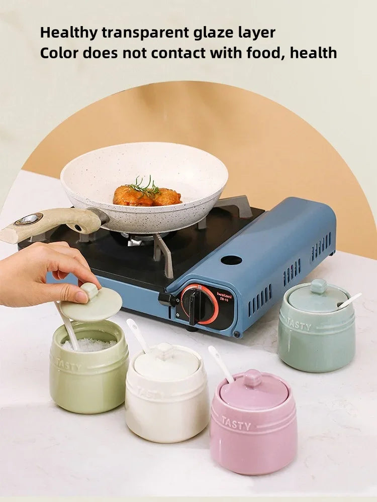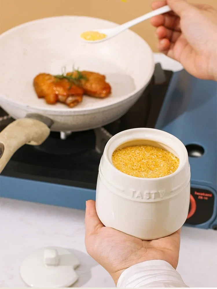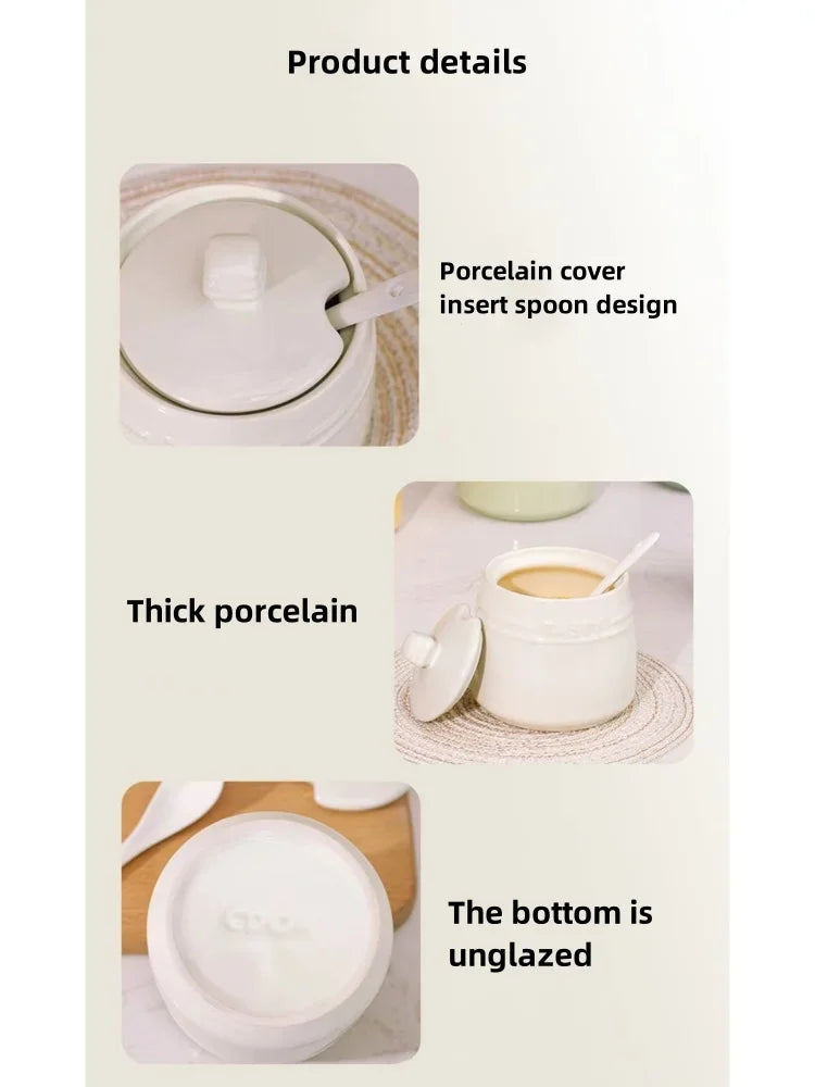 علبة توابل سيراميك مع ملعقة وغطاء 🍯