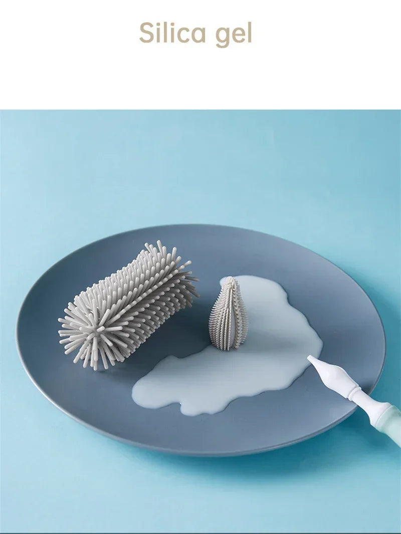 Silicone Bottle Cleaning Brush Baby Pacifier Straw Scrubber Food Grade Material 360 Degree Glass Washing Kitchen Cleaning Tool