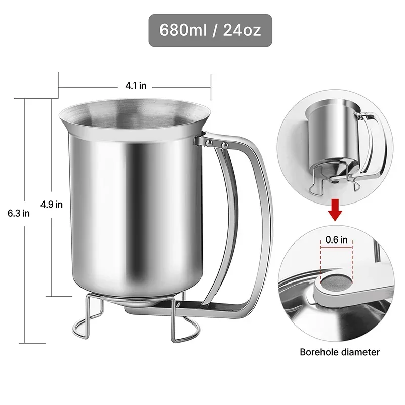 5. NOT EASILY DAMAGED: Pancake dispenser is made of stainless steel, which is sturdy, won't break and not easily damaged.
