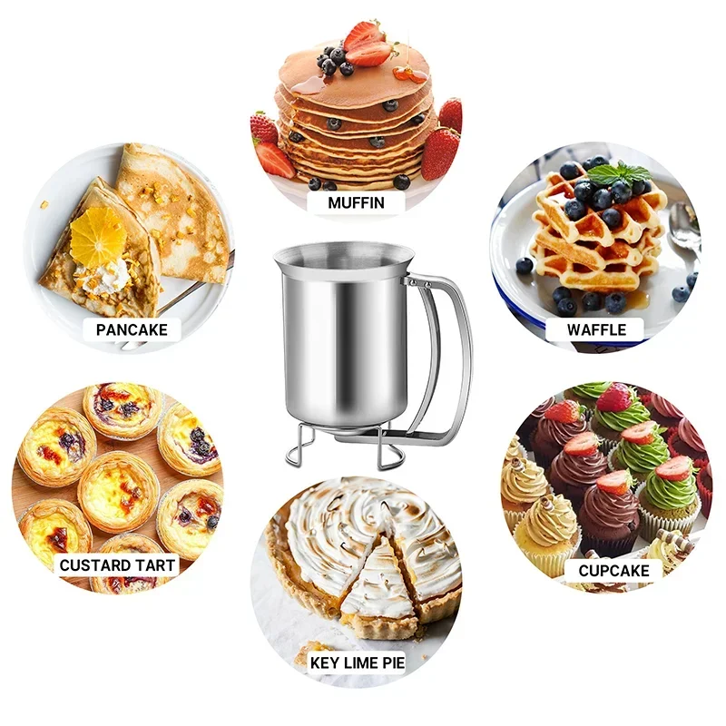 2. GREAT APPLICABILITY: Pancake pourer is suitable for different sizes of cakes, muffins, pancakes and any other baked goods.